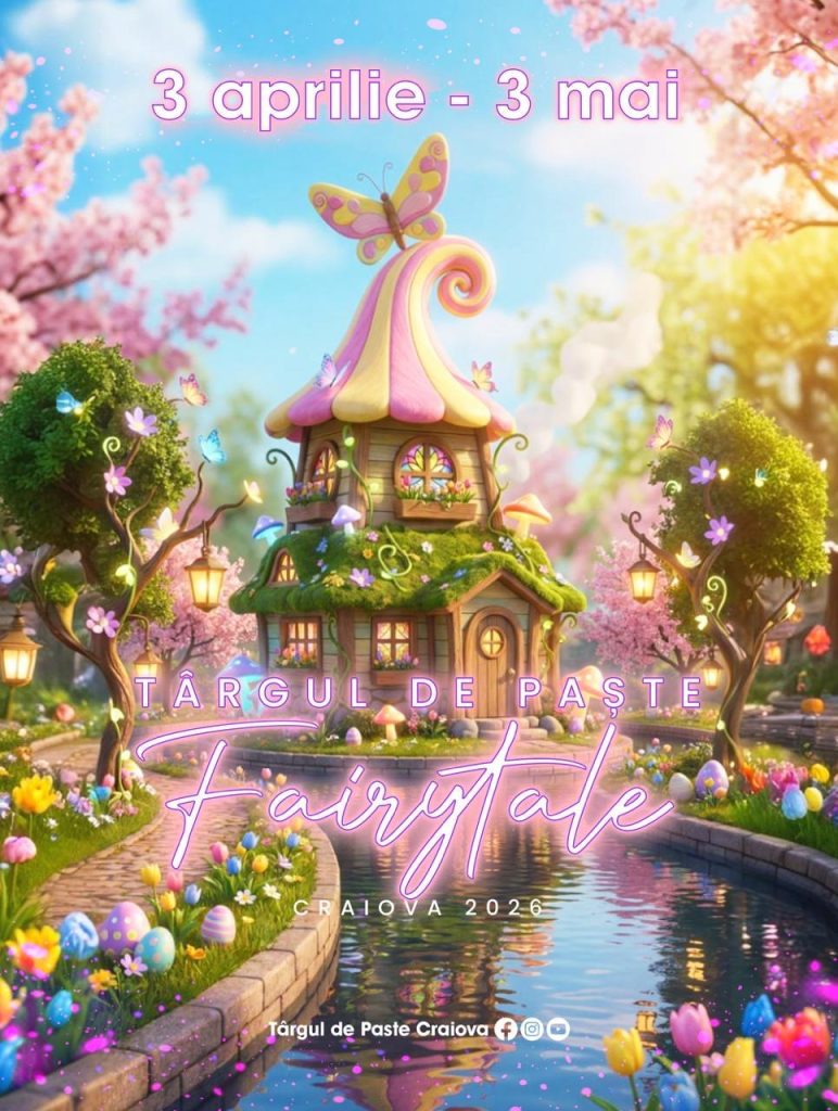 Craiova întâmpină primăvara cu unul dintre cele mai frumoase evenimente tematice din Europa – Târgul de Paște, care revine, anul acesta, cu o ediție spectaculoasă, sub tema Fairy Tales – Lumea Poveștilor. Conceput ca o explozie de bucurie, culori și veselie, Târgul de Paște de la Craiova se desfășoară în perioada 3 aprilie – 3 mai 2026 și promite o experiență multisenzorială, pentru toate vârstele. Astfel, printre zeci de mii de lalele, vizitatorii pot descoperi, anul acesta, castele și scene din cele mai cunoscute basme, căsuțe redecorate în culori pastel de artiștii locali, arteziene pe lac, concerte, scene religioase, iar noaptea holograme și luminițe spectaculoase.