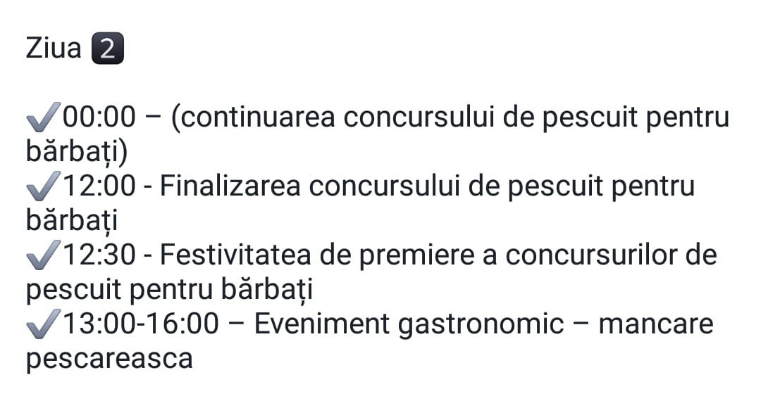 Activitățile recreative în aer liber vor cuprinde pescuit recreativ sportiv pentru participanți, degustare produse culinare, vizitare expozanți, asigurare ambient festivalier – muzica /manifestari artistice, încurajarea de activități sportive în aer liber pentru adulți și copii.